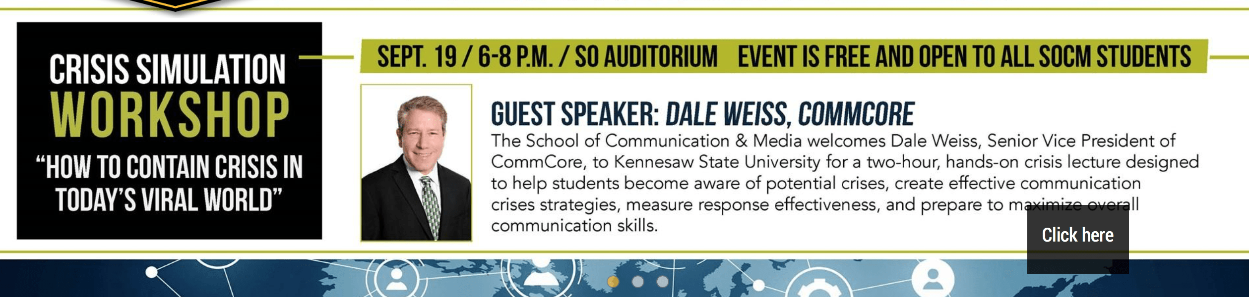 We are pleased to announce SVP Dale Weiss‘s crisis communications workshop, “How to Contain Crisis in Today’s Viral World,” to be presented at The School of Communication and Marketing (SOCM) at Kennesaw State University in Georgia.